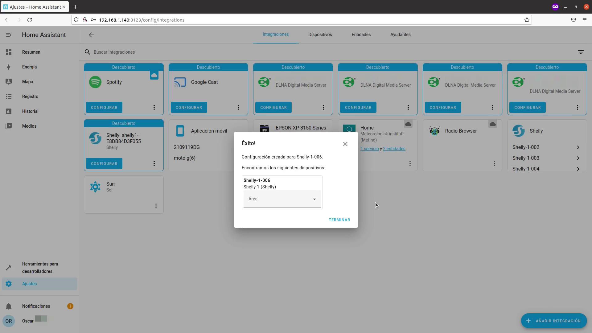 Con estos pasos ya tenemos añadido el Shelly 1 en Home Assistant