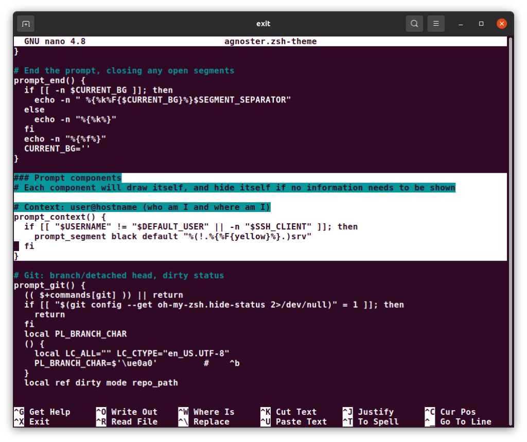 nano agnoster.zsh-theme